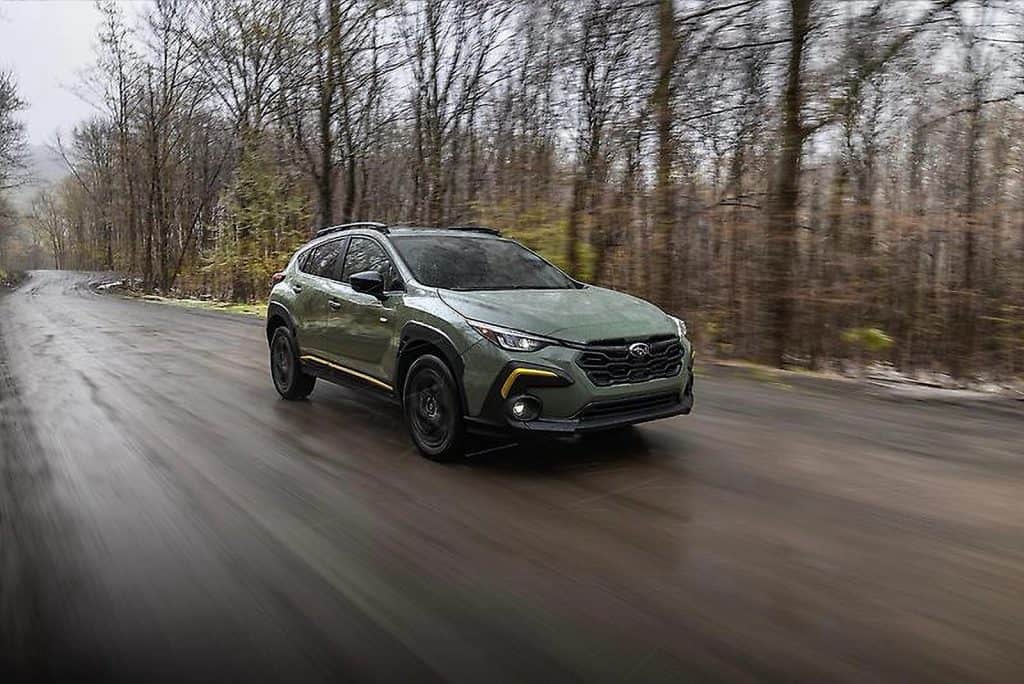 2024 Subaru Crosstrek Onyx AWD driving down wet dirt road.