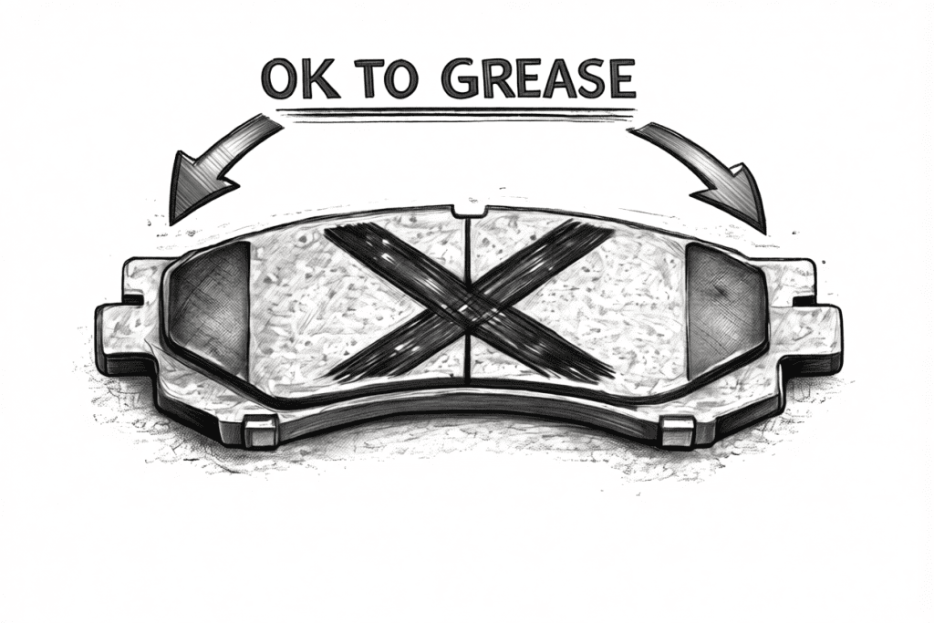 • Backs of the pads where they contact the caliper or piston (unless pads come with pre‑applied shims).