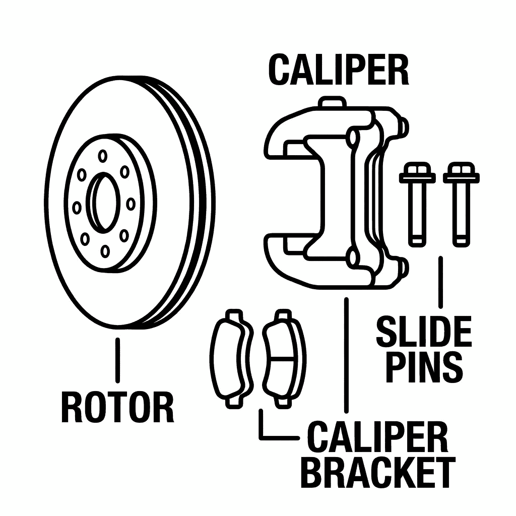 • ⚙︎ High-temperature brake grease — Apply only to slide pins and pad contact points; never to friction surfaces
