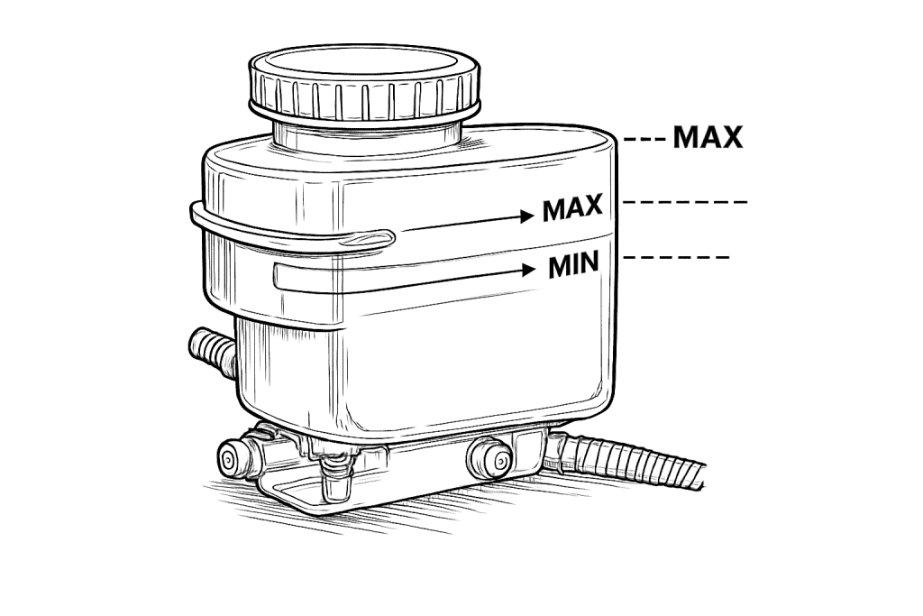 If needed, top up with the correct type of brake fluid (DOT 3, 4, etc., as specified on the cap/manual).