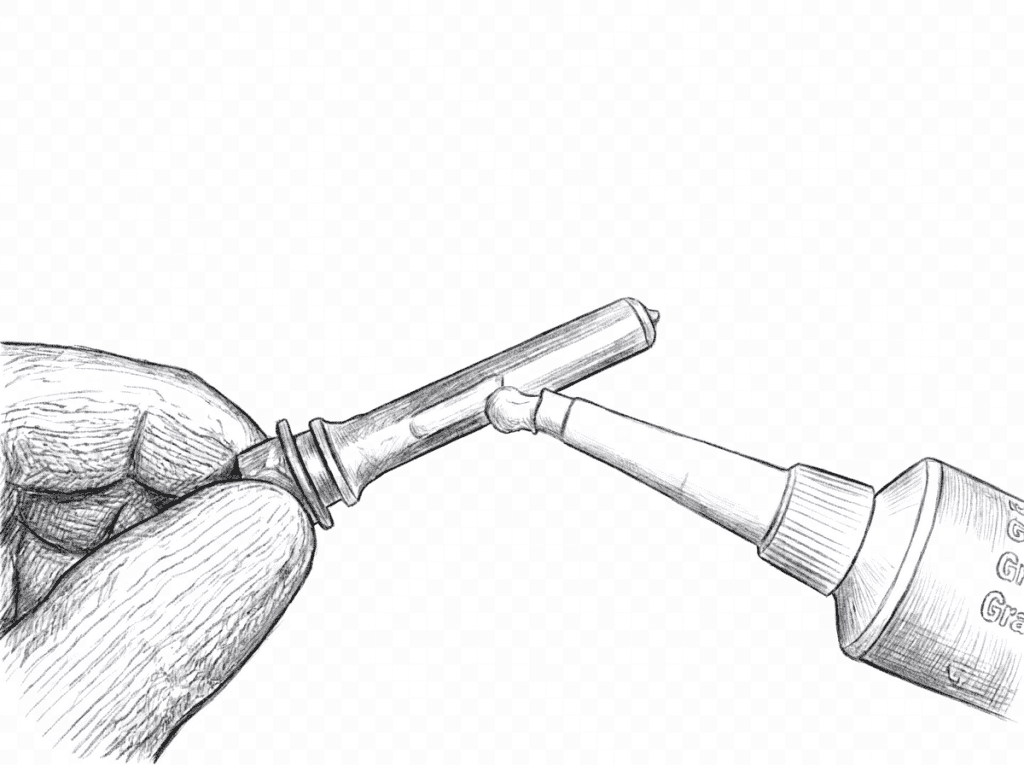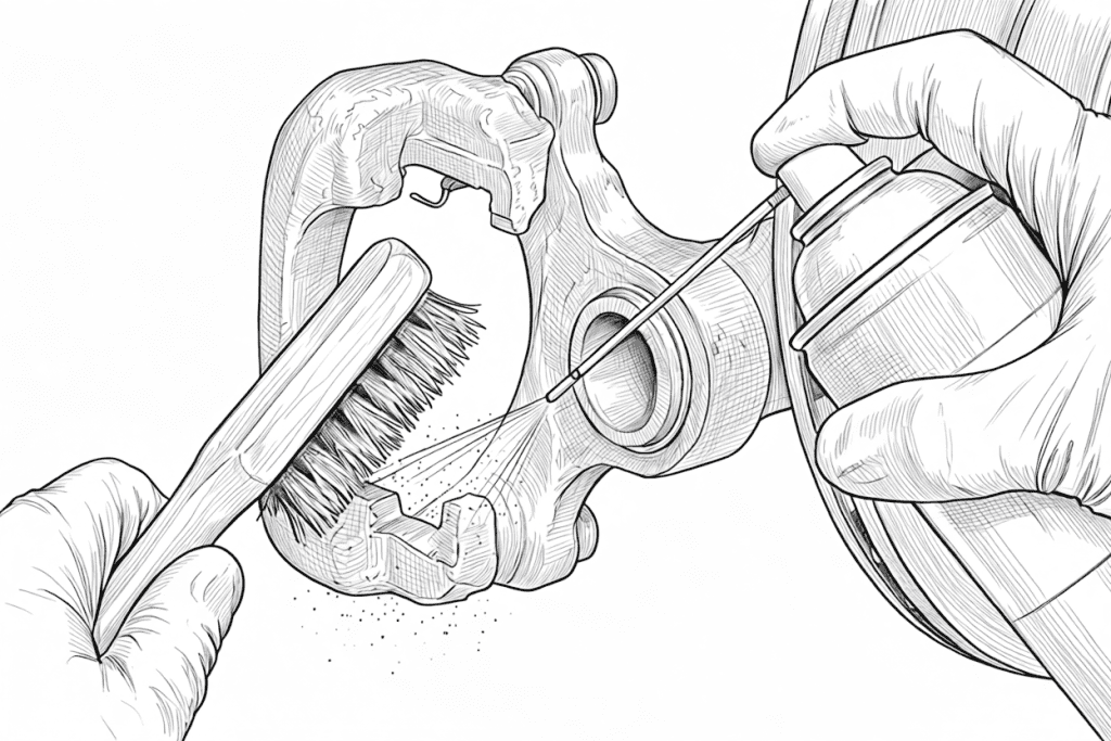 • Wipe them clean and apply a thin coat of high‑temp brake grease to the pin surfaces.