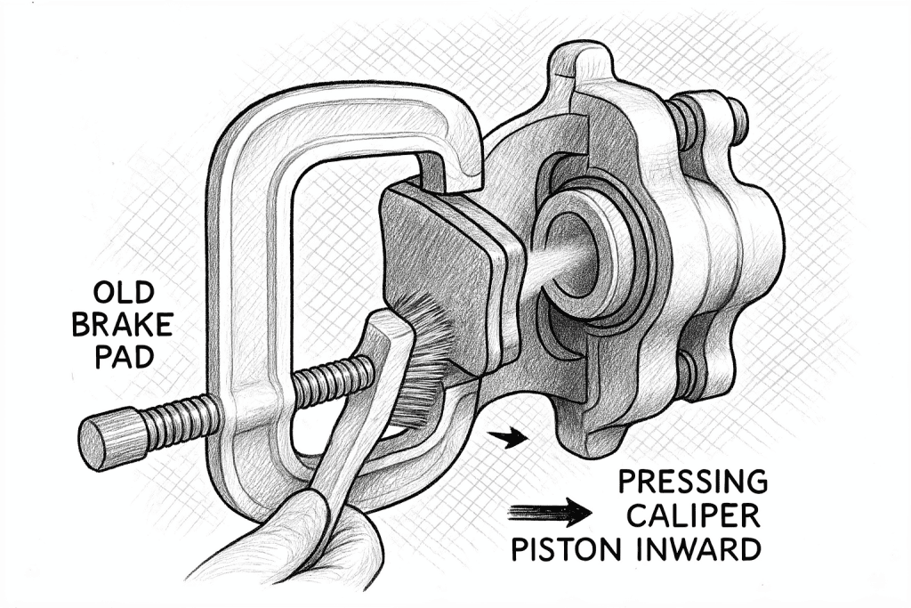 • ↩︎ C-clamp or caliper piston tool — Compresses the caliper piston during pad installation