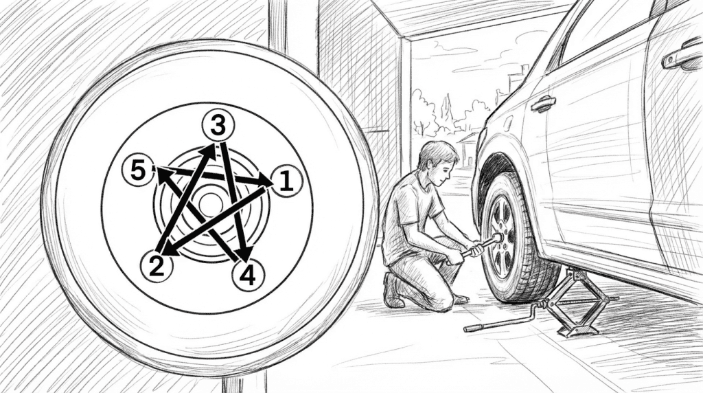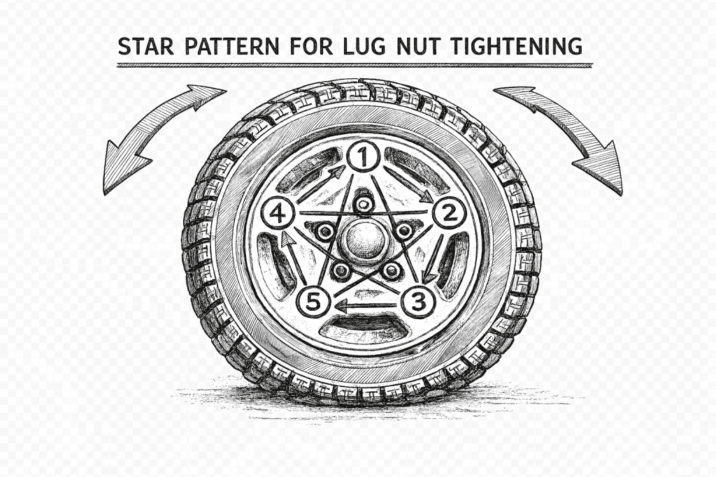 • Use a torque wrench to tighten lug nuts in a star pattern to the manufacturer’s specified torque.