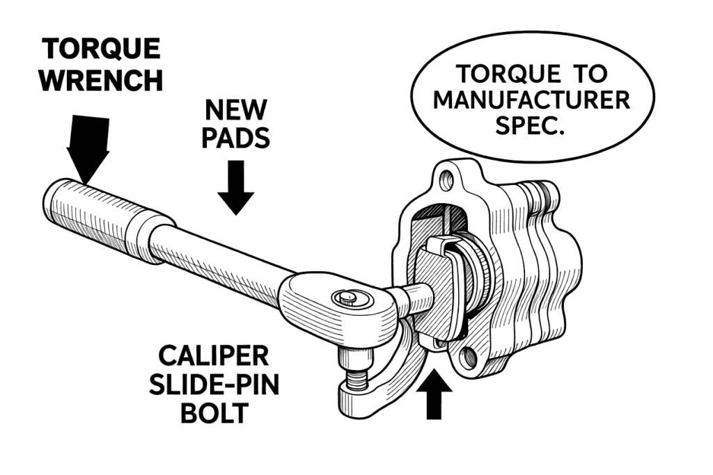 • Reinstall the slide pin bolts by hand to avoid cross‑threading.
